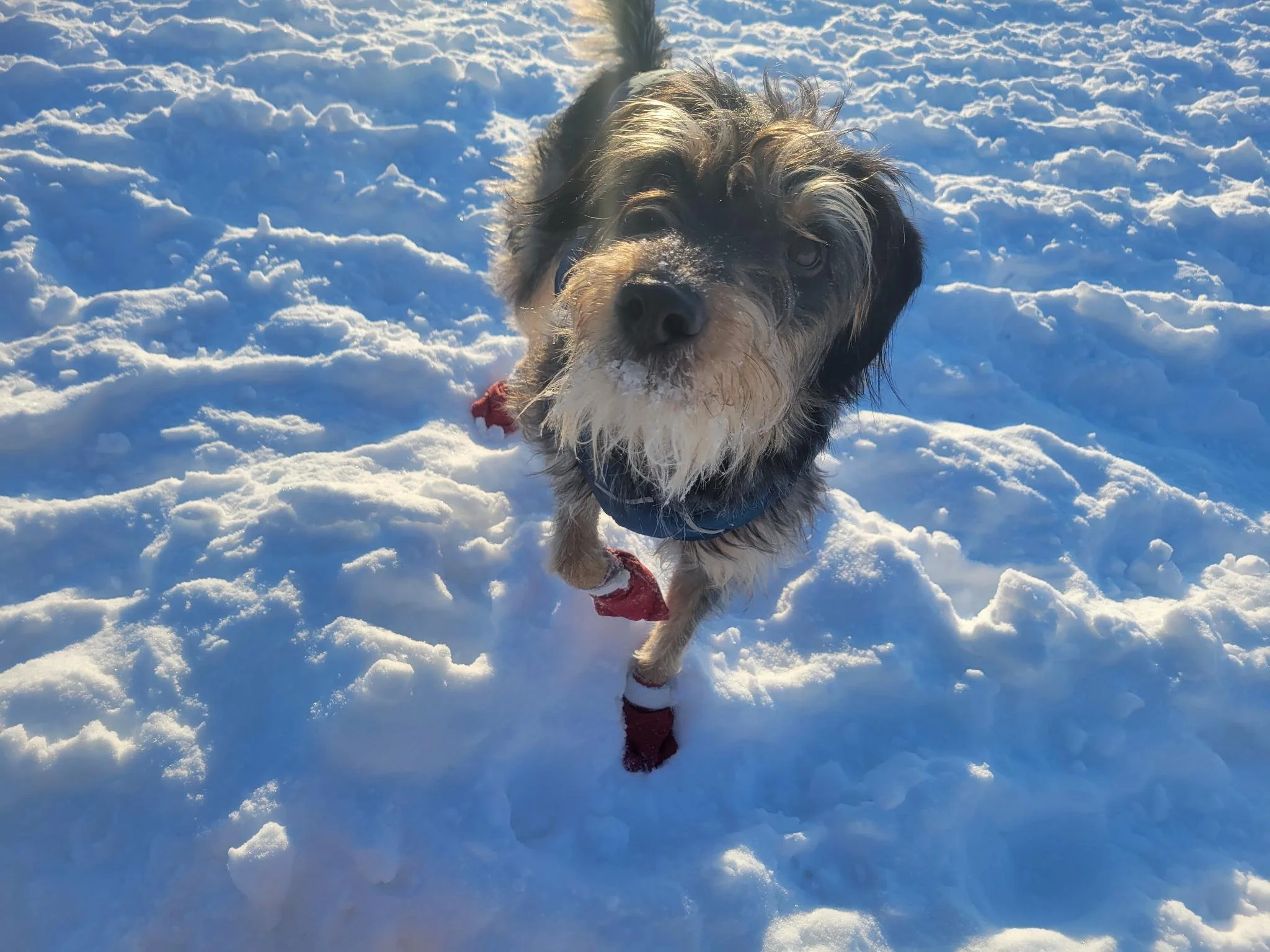 When it’s frigid out, Toł loves getting bundled up in his dog clothes so he can play games in the snow. This pup says, “Awoo! Keep Fairbanks cold!”